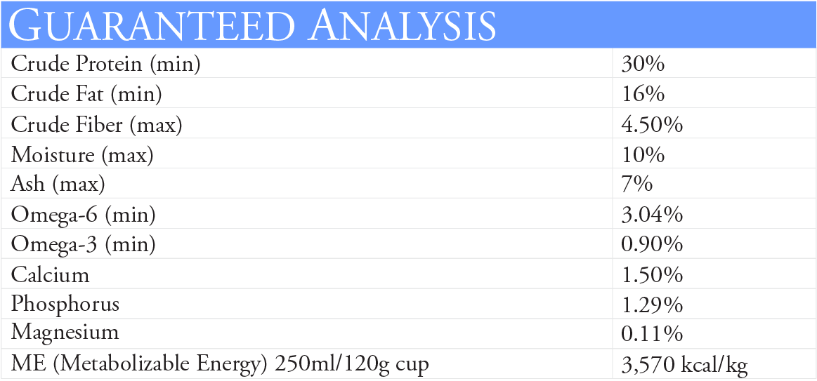 All cats are different so amounts will vary depending on breed, age, activity level and climate. Use the feeding chart as a guide to achieve your cat's ideal weight. Kittens need up to 2x and pregnant/nursing cats 3x the adult requirement. Serve dry or slightly moistened. Keep bag sealed for freshness. Store in cool dry place.